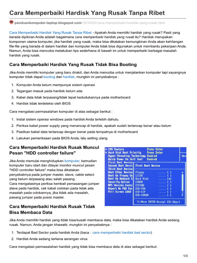 Penyebab Cara Memperbaiki Hardisk Rusak Total Bunyi
